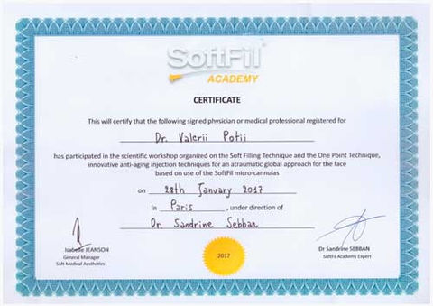 Вже 20 років - я міжнародний сертифікований тренер ін'єкційних методік у медичної естетики. Автор багатьох інновацій у галузі ін'єкційної косметології. При цьому, я також постійно навчаюсь, удосконалюю свій досвід, освоюю все нове і передове та із задоволенням ділюся своїми знаннями, навичками та досвідом з іншими косметологами та лікарями, як спікер авангардних конференцій, з'їздів та форумів у галузі естетичної косметології, як тренер та викладач курсів, тренінгів, семінарів та майстер-класів українських та міжнародних компаній б'юті-індустрії.